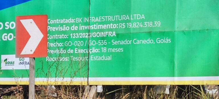 A população de Senador Canedo continua enfrentando transtornos com a obra de construção da ponte localizada no entroncamento da GO-020 com a GO-536, próximo à empresa JBS. O contrato nº 133/2023, que previa a conclusão da infraestrutura em até 18 meses, está paralisado e sem previsão de retomada.