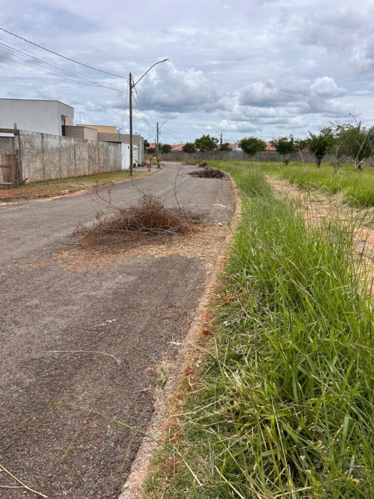 A comunidade do Residencial Brisas do Cerrado cobra uma nova intervenção da Prefeitura, desta vez com a conclusão total do serviço, incluindo a retirada do material cortado e a limpeza completa da área.